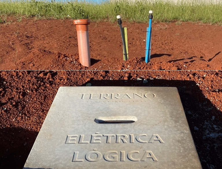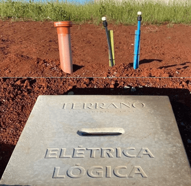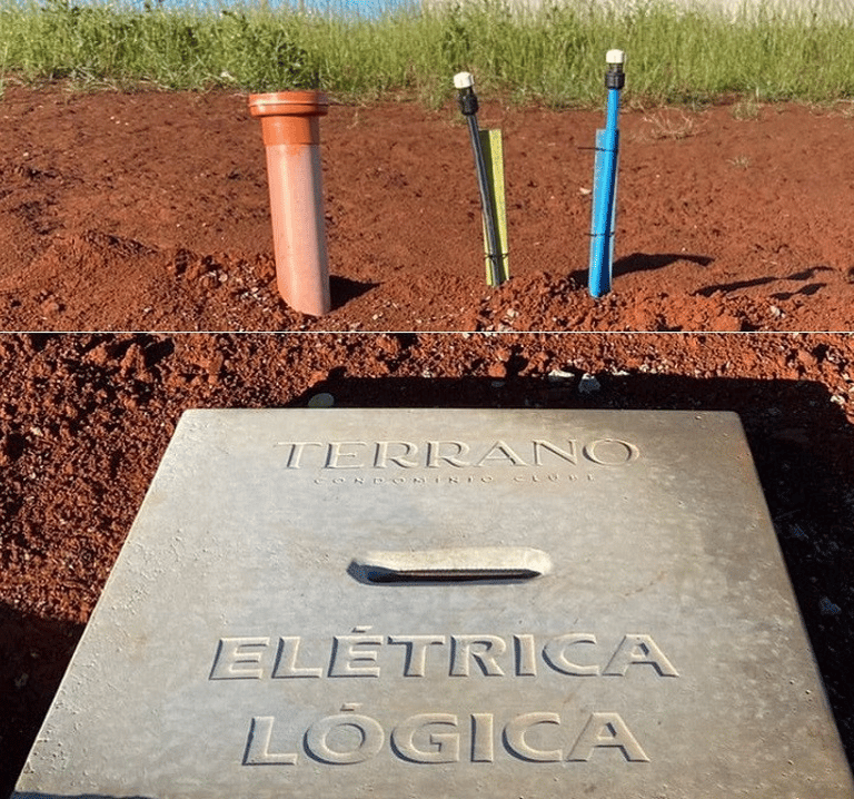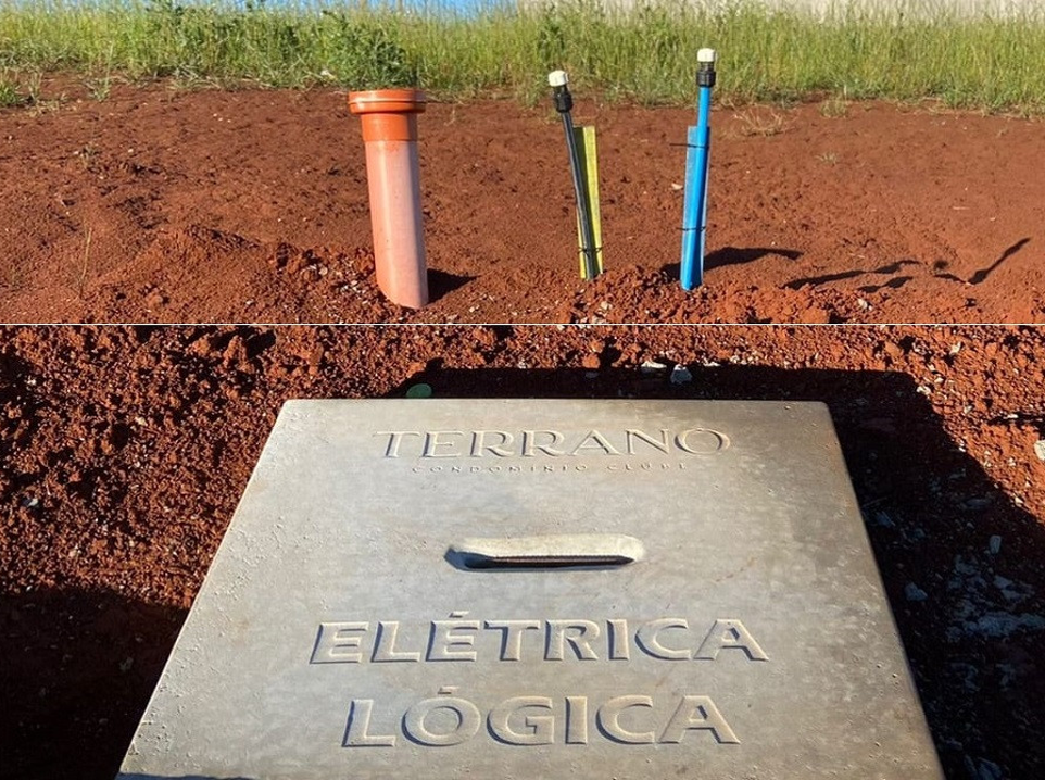 Disponíveis também tampas personalizadas, com a logomarca e textos indicando o tipo de uso (elétrica, lógica, pluvial, etc)
